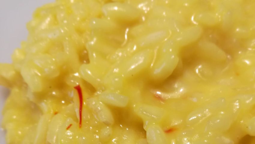 Riso carnaroli 300 gr, Brodo di carne di qualità 1 litro, Burro 120 gr, Cipolla 1, Grana Padano grattugiato 100 gr, Vino Bianco secco 1 bicchiere, Zafferano di Gaiano in pistilli gr 0,15