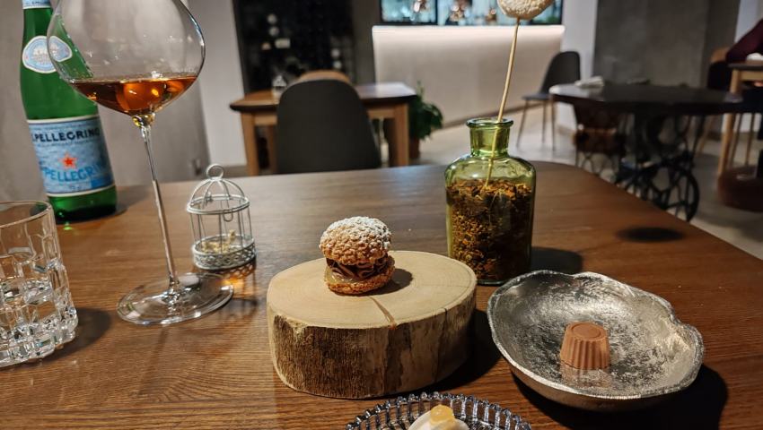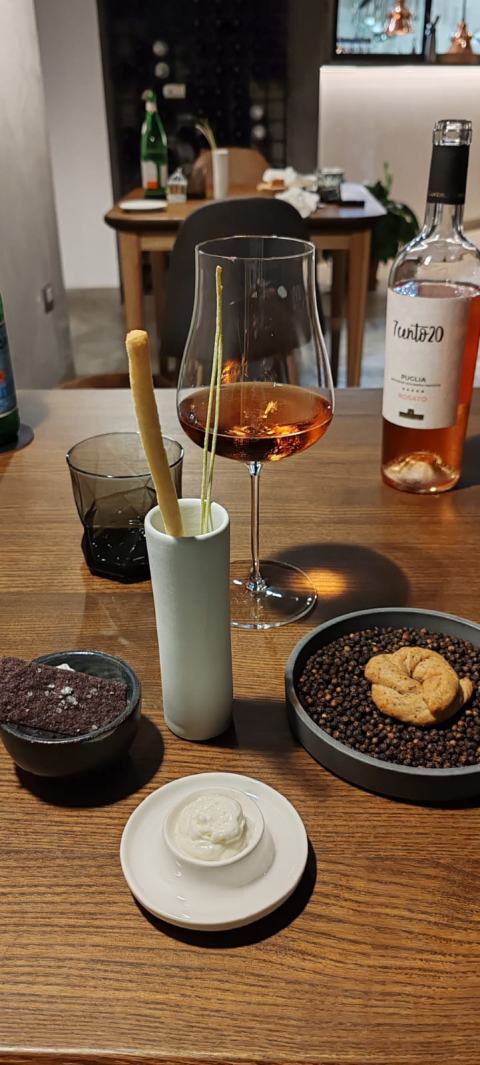 Cerrato è abile sulle micro-lavorazioni, un cesellatore nato, e lo si percepisce dalla cura maniacale che pone sui finger di benvenuto e sulla piccola pasticceria. Capolavori di gusto sono il manzo, gambero e sedano rapa, il riso di pasta, carciofi e kefir, la pescatrice e bieta con il suo quinto quarto lavorato come il soffritto alla napoletana e racchiuso in un raviolo sempre di bietola, il predessert “finta oliva” al cioccolato bianco, capperi e limone, il dessert con gelato alla camomilla su crumble di riso, mousse di barbabietola, cremoso all’olio evo, gel di barbabietola e meringa. Quando un pasto coinvolge tutti i sensi, non solo il gusto, lascia un'impressione duratura e memorabile.