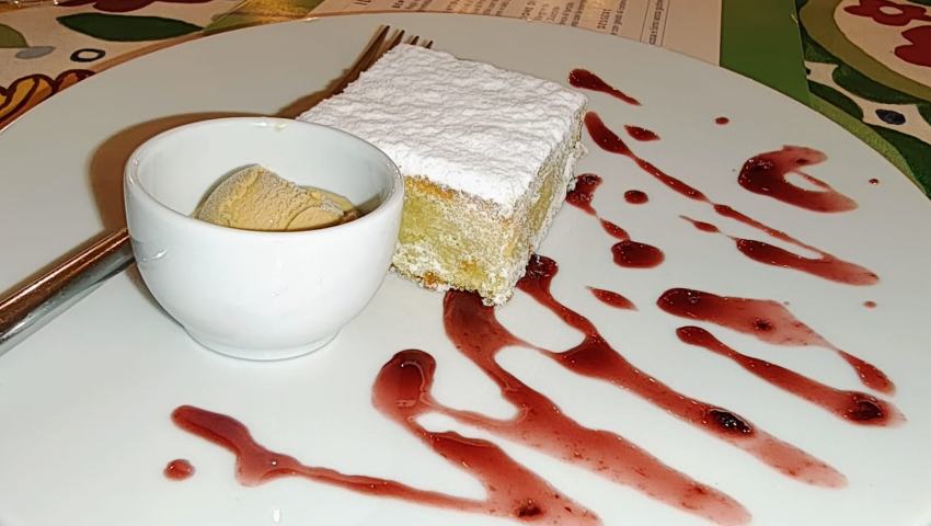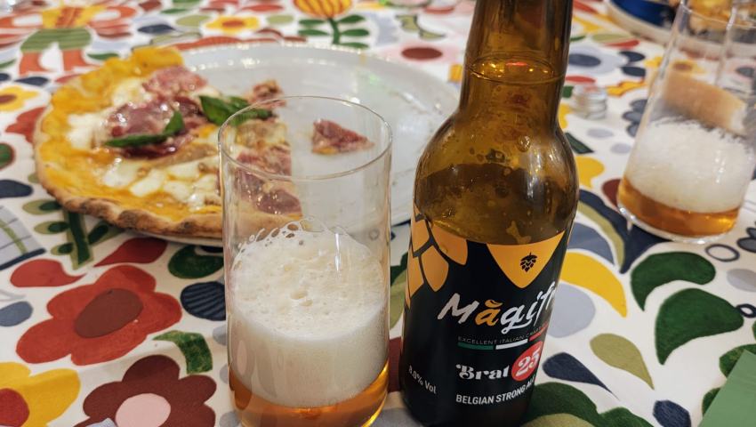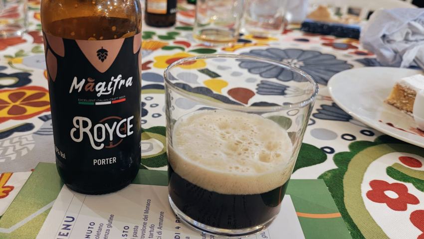 Il dessert ha chiuso la degustazione con una caprese bianca morbida e profumata di limone e mandorle, accompagnata da un gelato al caramello; un abbraccio dolce e deciso, in perfetto dialogo con le birre senza glutine del birrificio campano Màgifra di Vitulazio (CE), di cui sono state proposte tre etichette in abbinamento: la Venere, una Session IPA dagli aromi agrumati, la Brat 25, una Belgian Strong Ale complessa e avvolgente, e la Royce, una Porter dalle note tostate e cioccolatose medaglia d'oro alla dodicesima edizione del WGFBA 2025, concorso internazionale dedicato esclusivamente alle birre artigianali senza glutine organizzato in collaborazione con Unionbirrai, nella categoria alta/bassa fermentazione – birre scure.