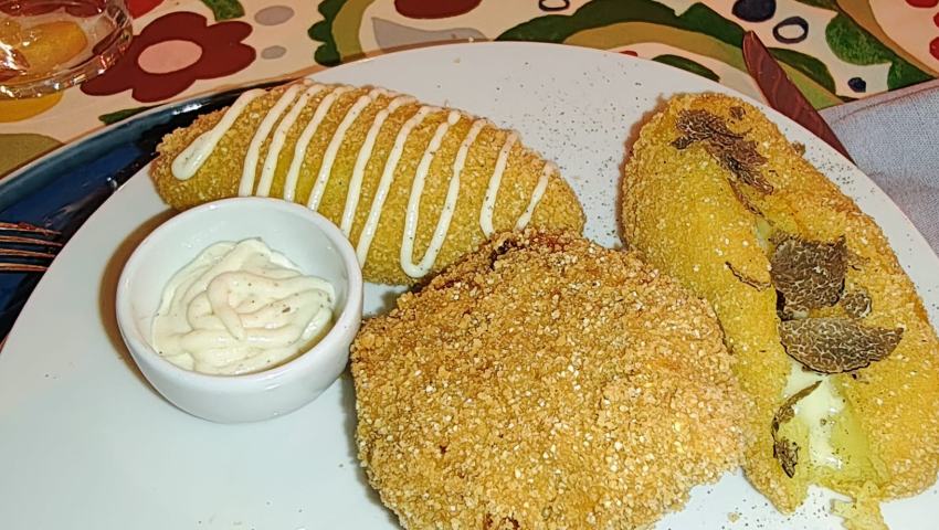 In un ambiente accogliente e riscaldato, pensato per la convivialità, l’esperienza ha preso forma attraverso un percorso degustativo senza compromessi. Il benvenuto ha celebrato la tradizione con un ragù napoletano servito per accompagnare una pagnottella senza glutine del laboratorio salernitano “Pasticceria e Lievitati Arienzo”, fragrante e profumata come il pane di una volta, tutto da "scarpettare". A seguire, un antipasto partenopeo che ha raccontato la Campania più autentica: frittatina di pasta dorata al punto giusto, crocchè con fonduta di provolone del monaco, crocchè al tartufo e focaccia burro e alici di Armatore di Cetara. Ogni morso ha dimostrato che il senza glutine, se ben interpretato, non è una copia, ma un linguaggio gastronomico autonomo, fatto di tecnica e sensibilità.