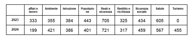 All’interno dell’indagine sono presenti delle sottocategorie, che indicano il miglioramento ed il peggioramento dal punto di vista sociale, ambientale ed economico. Tra queste troviamo: tasso di disoccupazione 15-64 anni; densità di verde urbano nei capoluoghi; infortuni sul lavoro per 1000 occupati; reati contro la persona per 100mila abitanti; posti letto in ospedale per 100 abitanti; prezzi al mq degli immobili residenziali.