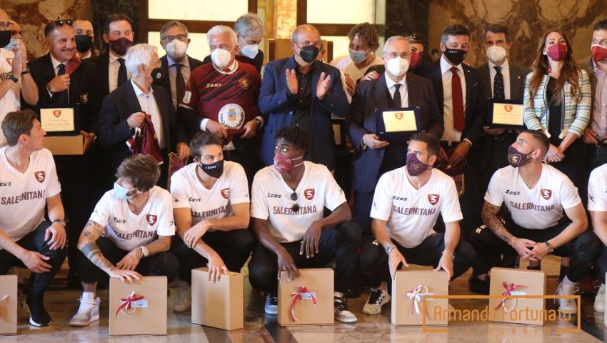 Nei giorni scorsi, allo stadio Arechi, il primo cittadino aveva già incontrato la squadra, in occasione della premiazione ufficiale da parte della Lega B per l'accesso alla categoria superiore. Quest'oggi, invece, il riconoscimento istituzionale, che certifica in maniera ancor più solenne il fantastico traguardo raggiunto dai granata e il legame con la città.